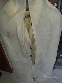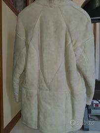 Montone in SHEARLING originale come da etichetta, colore grigio chiaro e collo a scialle.