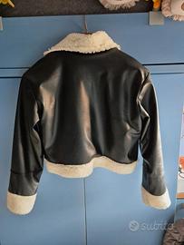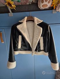 montone nero in ecopelle corto con pelliccia interna bianca.