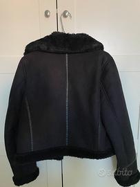Montone in camoscio, con pelliccia interna e sui polsi e dettagli in ecopelle.