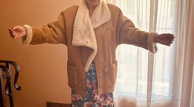 Giaccone in montone sharling di alto pregio. Colore naturale interno bianco, usato pochissimo, tenuto bene, no tracce di usura, no macchie, pulitissimo. Vintage tornato attuale.