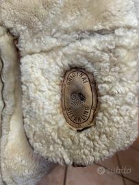 Vendo giacca in vero montone Shearling, taglia 42/44 o M. Datato ma bene conservato, caldo e morbido. In foto lo indossa mia mamma, alta 165cm e di media corporatura.
