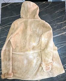 Vendo giaccone da donna in vero montone/shearling marca Marrester, made in Italy. Colore cammello, esterno in pelle scamosciata, interno e bordi in pelliccia morbida. Modello con cappuccio, chiusura frontale con alamari, tasche laterali con zip. Capo caldo, leggero e molto confortevole, ideale per inverno e mezza stagione fredda. Pelle e cuciture integre, pelliccia piena e soffice. Conservato sempre in armadio con copriabito, ambiente non fumatori. Dettagli Marca: Marrester Origine: Made in Italy Materiale: vero montone/shearling, esterno camoscio Colore: cammello Taglia indicativa: M/L Misure: spalle [48cm], torace [52cm], manica [62cm], lunghezza [78cm] Chiusura: alamari Tasche: 2 con zip Cappuccio: sì Capo di qualità artigianale italiana, molto caldo e resistente, pronto all’uso. Scrivere su Subito per accordi e domande. Rispondo rapidamente.