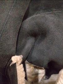 Capo di altissima qualità con interno in vera pelliccia color cognac, calda e morbidissima, ed esterno in montone nero scamosciato dal look sofisticato e senza tempo.