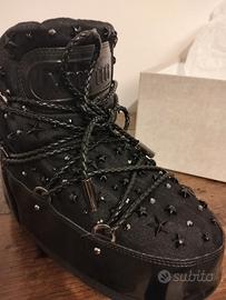 Stilosissimo paio di Moon Boot firmati Jimmy Choo, decorati con borchie e stelline tono su tono.