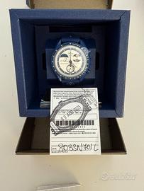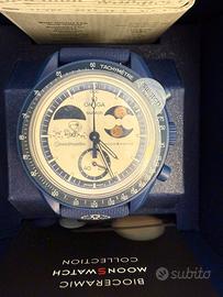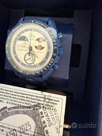Terra, mentre il cinturino in caucciù navy con chiusura VELCRO® aggiunge un tocco di eleganza astronautica. Tutti i quadranti della collezione recano il marchio OMEGA X Swatch, l'iconico logo Speedmaster e il logo MoonSwatch.