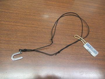Ciondolo in acciaio con incastonato un piccolo brillantino vero. Marca Morellato, nuovo mai utilizzato, lunghezza circa 18 millimetri. Il laccio è di cotone cerato nero, regolabile per qualsiasi misura di collo.