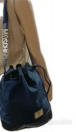 Secchiello vintage Moschino by Redwall colore blu in tessuto è impermabile e pelle. Segni di usura sulla tracolla.