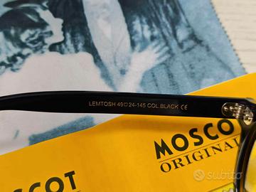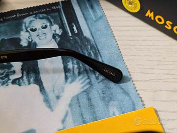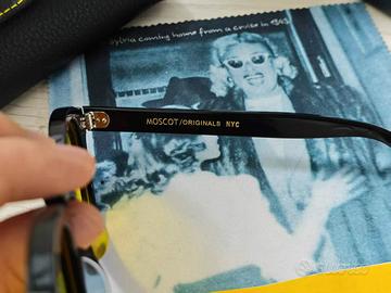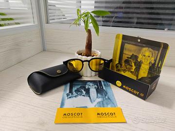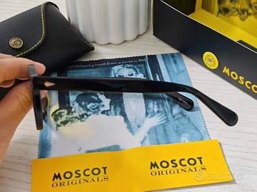 Occhiali da sole MOSCOT, misura 49, nuovi e originali. Montatura nera con lenti gialle, perfetti per un look audace e distintivo. Include scatola e panno originale. Ideali per ogni occasione! Let me know if you'd like any adjustments!