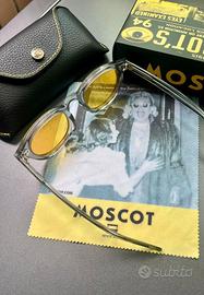 Vendo occhiali da sole MOSCOT originali, montatura trasparente con lenti gialle. Modello iconico, elegante e senza tempo, perfetto per chi cerca uno stile unico e ricercato.