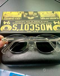 Vendo occhiali da sole MOSCOT originali, montatura trasparente con lenti scure. Design iconico, elegante e sempre attuale.
