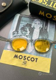 Vendo occhiali da sole MOSCOT, montatura trasparente con eleganti lenti gialle, dal look moderno e originale.