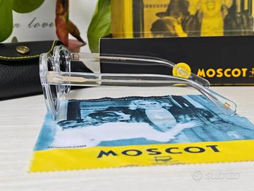 Occhiali MOSCOT originali, nuovi, taglia 49, trasparenti con lenti scure. Completi di scatola, custodia e panno. Mai usati, perfetti. Unisex, comodi e leggeri. Spedizione tracciata tramite Subito.