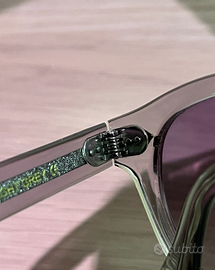 Condizioni eccellenti: montatura trasparente uniforme, cerniere solide, lenti senza segni evidenti.