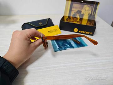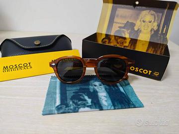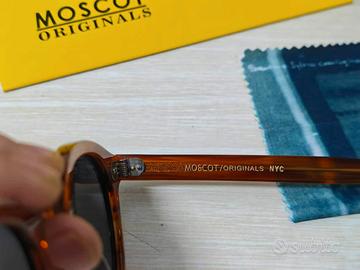 Occhiali MOSCOT originali, nuovi, taglia 49, colore tartaruga con lenti scure. Completi di scatola, custodia e panno come da foto. Mai usati, perfetti. Modello unisex, stile classico e sempre attuale. Spedizione veloce tramite Subito.