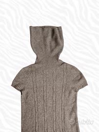 - Dettagli: Lavorazione a trecce sul davanti, collo alto a dolcevita (pieghevole), maniche corte a calotta e pratiche taschine frontali.