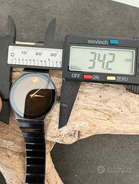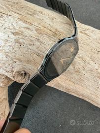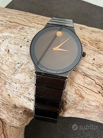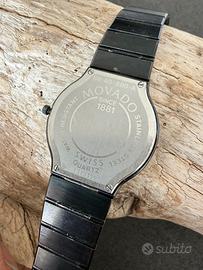 Movado Museum Ultra Thin originale, ref. 84-40-880-A. Elegante orologio svizzero ultrapiatto con iconico quadrante nero minimal e punto a ore 12. Bracciale integrato in acciaio nero originale. Movimento al quarzo, funzionante. Condizioni: usato con segni visibili su cassa e bracciale e quadrante (vedi foto), vetro con qualche segno ma perfettamente leggibile. Orologio molto sottile e comodo da indossare, ideale per uso elegante. Prezzo: 269 € trattabili.