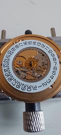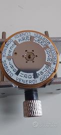 Movimento ETA 955.132 interamente revisionato e perfettamente funzionante in tutto. Il meccanismo è stato completamente smontato, pulito e lubrificato, provato montato in cassa e funziona tutto regolarmente. Dischi di colore bianco con data a ore 3 e giorno a ore 6, disco calendario in italiano. Si vende il solo meccanismo.
