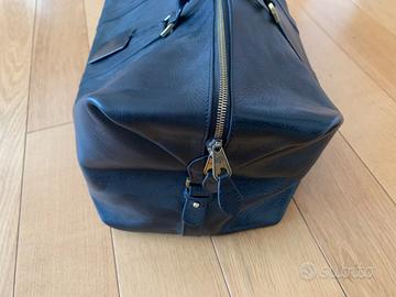 Una borsa viaggio senza tempo in misura media. La borsa ha due manici e una tracolla. Disponibile nei colori cuoio e nero.