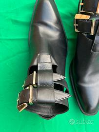 • Fibbie metalliche color Oro con logo inciso (stile riconoscibile Paciotti).