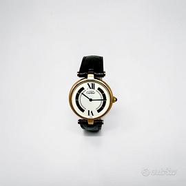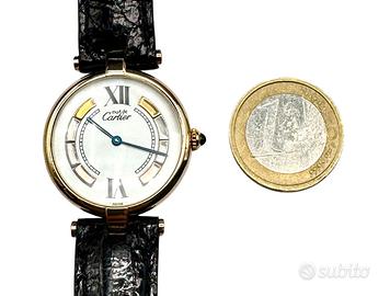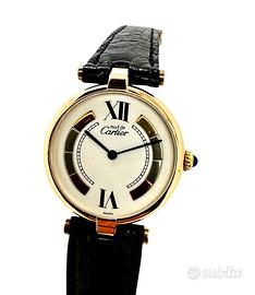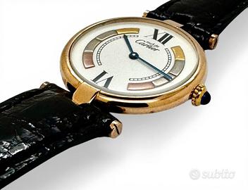 orologio da polso Must de Cartier Vermeil Trinity anni 80 in argento 925 placcato oro 20m movimento al quarzo cinturino in pelle chiusura deployante originale Cartier possibilità di finanziamento spedizione tracciata e assicurata