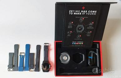 MyKronoz Zetime è Il primo e unico smartwatch ibrido al mondo che abbina LANCETTE VERE, analogiche, su schermo tattile a colori. Oggetto raro, prodotto in versione da uomo e da donna con bracciali in acciaio e in elastomero. Qui in vendita la versione UOMO TOTAL BLACK con un totale di 4 cinturini in elastomero di colori vari (vedi foto), scatola originale con caricatore magnetico con batteria integrata che consente di ricaricare più volte l'orologio senza avere l'alimentatore con sé. Possibilità di sostituire un cinturino in caucciù sintetico con versione in maglie di acciaio (tipo Rolex per capirci). Oggetto affascinante, nuovo mai usato né accoppiato al telefono mediante app. Scatola aperta solo per fare le foto.