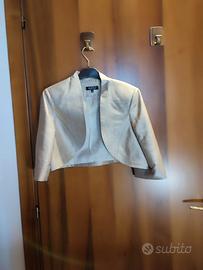 N. 2 coprispalle usati, color oro (taglia 48 in seta) e blu (taglia 50 in poliestere), più vestito smanicato blu in poliestere taglia 50 abbinabile.