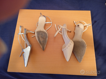 Due paia di scarpe Zara misura 36 Tacco cm7 quelle metallizzate argento e cm6 quelle in vernice color carne. Usate pochissimo. Euro 15 Al paio