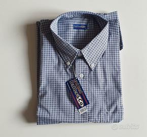 n° 1 camicia marca Baker & CO, taglia XL, a piccoli quadretti blu, con taschino frontale e bottoncini al collo, ancora con etichetta (cotone 35%, poliestere 65%),