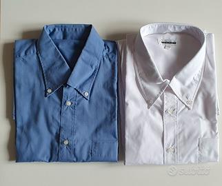 n° 1 camicia azzurra con bottoncini al collo e un taschino frontale (cotone 35%, poliestere 65%), usata ma in ottimo stato