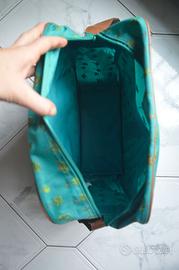 Borsa Originale Naj Oleari anni '90 color verde acqua scuro con disegni di palme