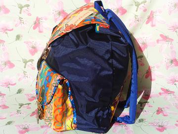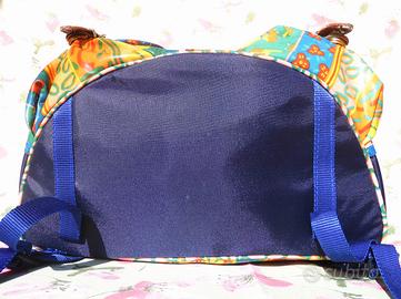 *RISPONDO SOLO ad ALTRI UTENTI ISCRITTI A SUBITO, con PIU' ANNUNCI ATTIVI.* NO IMITAZIONI o RIEDIZIONI CONTEMPORANEE! NO VINTAGE USATO! Bellissimo ZAINETTO NAJ OLEARI, originale e autentico ANNI '90. Ormai molto RARO, per chi vuole distinguersi con ORIGINALITA'! Lo zaino ha una UNICA, grande TASCA, con chiusura a COULISSE e fibbia, DUE TASCHETTE inferiori con fibbie, FONDO RIGIDO, SCHIENALE e SPALLACCI IMBOTTITI e REGOLABILI, MANIGLIA. E' composto da DUE TESSUTI: uno SINTETICO BLU SCURO, con particolari (PATELLA, TASCHETTE, SCHIENALE imbottito) in MATERIALE LUCIDO che sembra PVC o PLASTICA MORBIDA; in realtà è TESSUTO CERATO, come si evince aprendo le TASCHETTE. La fantasia è composta da 'blocchi' di colore e vari disegni fiorati, in stile patchwork. Questa 'ceratura' multicolore riguarda: _ PATELLA ESTERNA e INTERNA _ BORDO interno intorno alla coulisse _ BORDINO lungo centrale _ FIBBIE _ TASCHETTE esterne e PATELLINE interno ed esterno _ SCHIENALE imbottito. TUTTE le fibbie nascondono un comodo BOTTONE CALAMITATO. Lo zaino è MOLTO CAPIENTE, così come le taschette inferiori. DIMENSIONI cm. 45 x 38 x 13. BASE a mezzaluna: cm. 34 x 18max. BRETELLE: REGOLABILI fino a 70 cm. PESO: 684 gr. - CONDIZIONI OTTIME CONDIZIONI, ben PRESERVATO, COMPLETO e PULITO. * NON TRATTO E NON HO MAI TRATTATO USATO * L'oggetto proviene da negozio e non ha alcun segno di usura o deterioramento. METALLI LUCIDI. Evidenzio quanto già ben visibile in foto - ed evidenziato in appositi primissimi piani - ovvero che LE FIBBIE e LA STRISCIA CENTRALE sono PIÙ SCURE e più DURE del resto della parte decorata: questo dovuto alla COLLA UTILIZZATA per IL FISSAGGIO, che si è indurita. MACCHIE DI UMIDITÁ all'interno (e all'esterno) di una delle taschette: questa fantasia Naj DA' SEMPRE QUESTO PROBLEMA. Chiedere per info e foto più dettagliate: qui NON ho lo spazio sufficiente. © NAJ OLEARI - AUGURI DI MONDADORI - SPEDISCO SOLO con POSTE DELIVERY STANDARD.