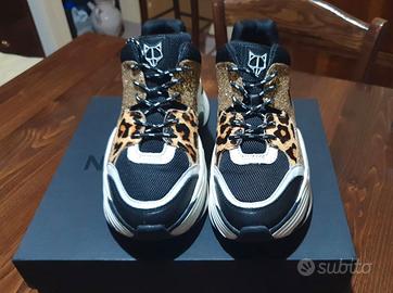 Vendo Naked Wolfe Track Leopard Combo, sneakers chunky dal design unico con stampa leopardata e dettagli in suede e mesh.