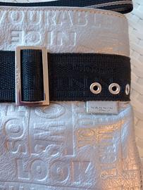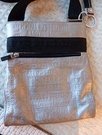 NANNINI borsa donna a tracolla, in ecopelle, colore argento/nero.