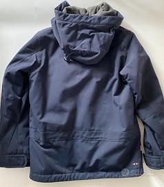 Giacca Anorak Rainforest colore blu, taglia S, con cappuccio e tasca a marsupio. Ottime condizioni, vestibilità regolare, con fodera interna in pile di colore grigio. Ideale x outdoor, grazie alle sue caratteristiche tecniche: cuciture nastrate nei punti critici, regolazione avanzata del cappuccio, polsini interni e orlo regolabile, dotata di imbottitura, assicura leggerezza e comfort termico.