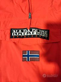 Vendo l'iconica giacca a vento anorak Napapijri, un classico versatile con il famoso logo frontale e la bandiera norvegese. È in perfette condizioni, presenta una fodera interna in mesh, zip corta al collo e la comoda cerniera laterale per una vestizione rapida. Un capo essenziale in Regular Fit perfetto per ogni stagione.