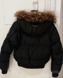 Giubbotto/bomber in piuma, colore nero e cappuccio staccabile (sia in toto che solo la pelliccia). Gradita la consegna a mano per tastare le perfette condizioni del prodotto, in ogni caso posso anche spedire (con corriere tracciabile).
