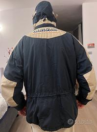 Giacca Parka in cordura - water repellent. 4 tasche anteriori - regolabile il cappuccio e sulla vita. Abbigliamento sportivo - sci - snowboard. Colore Blu e Nocciola chiaro
