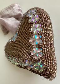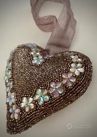 Nappa Vintage in Pregiato Materiale d'Alta Passamaneria per Abbellimento Ambienti e Mobilio. Misure: Larghezza Cuore 14 Spessore Cuore 5 Altezza Cuore 13 Altezza Totale (Cuore+Nastro in Raso) 33