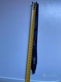 Fascetta in tessuto lucido con scritte Dior dorate. È di colore blu notte e nella giunta è elastico come in foto