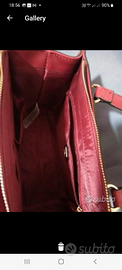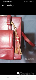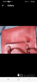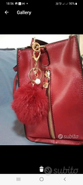 Borsa a tracolla rossa, nuova, similpelle, con manici e tracollina regolabile e porta chiavi incluso.