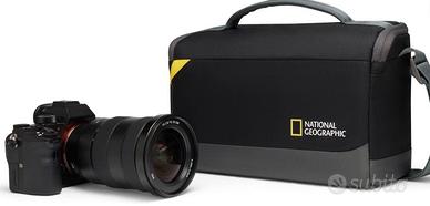 la borsa a tracolla NATIONAL GEOGRAPHIC Medium è ottimale per fotocamere DSLR o mirrorless, con 2 obiettivi aggiuntivi (a seconda delle dimensioni), con una tasca interna in rete sul lato inferiore della patta di apertura per riporre piccoli accessori, batterie di ricambio, cavi sciolti o schede di memoria.