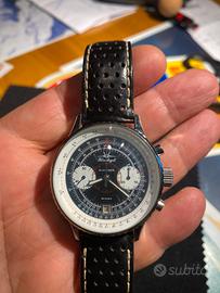 Il Cronografo Navitimer Modello Blu Angel della Poljot è un orologio di origine russa, noto per il suo movimento meccanico a carica manuale, il calibro Poljot 3133, molto apprezzato per l'affidabilità e il rapporto qualità-prezzo. Questo modello specifico con design blu e funzionalità di cronografo rappresenta un'edizione legata alle sue origini legate alla aviazione militare, come suggerito dal nome "Blue Angels" e dalle sue caratteristiche estetiche e funzionali.