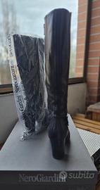 Stivali da donna Nero Giardini originali, in pelle nera nr. 38 in ottimo stato con tacco 70. Corredati di scatola