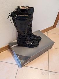 Stivale stringato lucido Naplak nero, cerniera interna, altezza gamba al polpaccio, fondo con zeppa in gomma. Taglia 39.