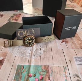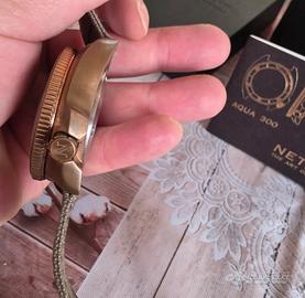 Nethuns Aqua con cassa in bronzo, cinturino in corda e fibbia in bronzo.