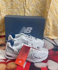 Vendo New Balance 530 bianco e blu, taglia 38, nuove. Con scatola. Comode e leggere, ideali per tutti i giorni. Spedizione veloce 👍