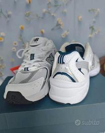 Vendo New Balance 530 bianco e blu, taglia 40, nuove. Con scatola. Comode e leggere, ideali per tutti i giorni. Spedizione veloce 👍