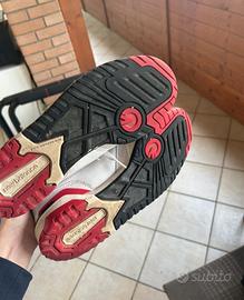 Sneakers New Balance 550 colore bianco con dettagli rossi e neri.