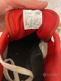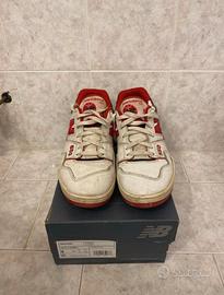 new balance 550 rosse, taglia 42.5 . la scatpa presenta qualche graffio e diffetto nella parte anteriore.