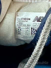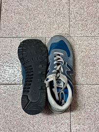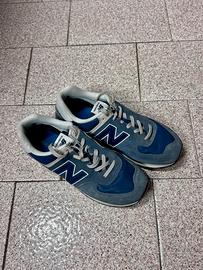 Scarpe sneakers sportive New Balance modello 574 Classic da uomo taglia EU 44, US 10, 28 cm. Colore blu jeans con lacci e dettagli grigi. Comodissime, ben tenute. Soletta estraibile. Condizione come da foto, in buon usato. Scatola non presente.